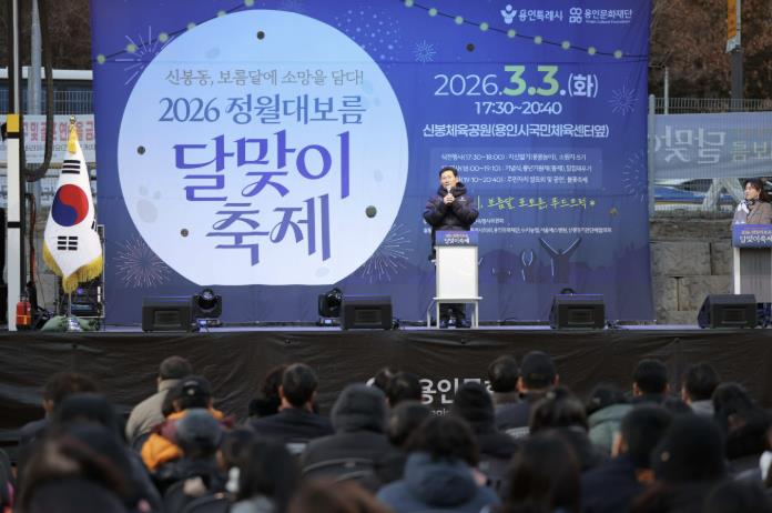 3일 수지구 신봉동에서 열린 '2026 신봉동 정월대보름 달맞이 축제'에서 이상일 시장이 축사를 하고 있다.