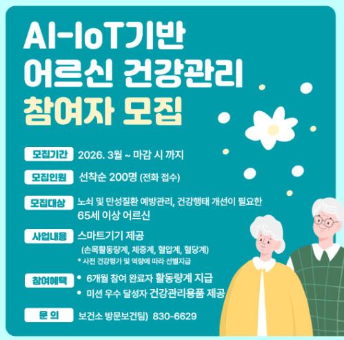 고흥군, 2026년 AI·IoT 활용 어르신 건강관리 신규 참여자 모집