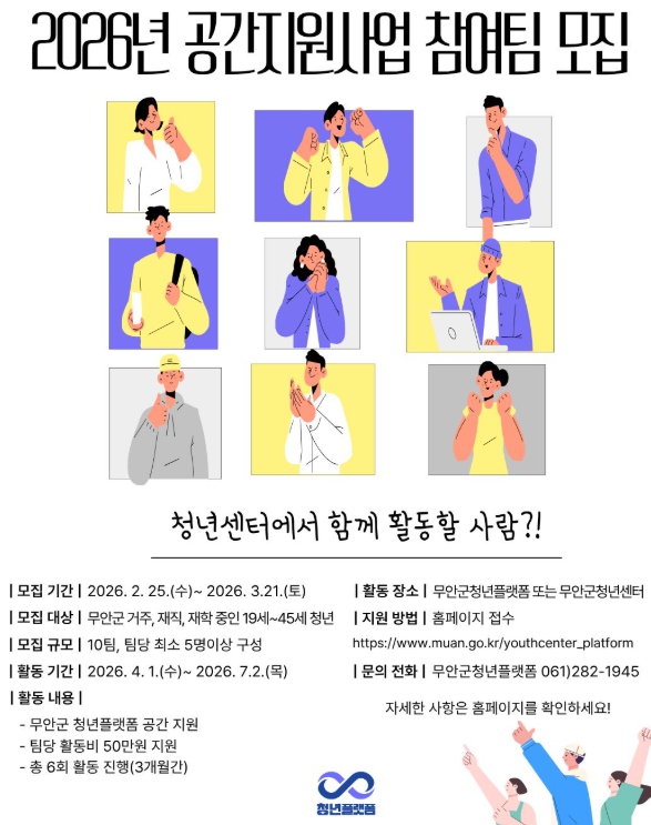 무안군청년플랫폼,‘2026년 공간지원 사업’ 참여팀 모집