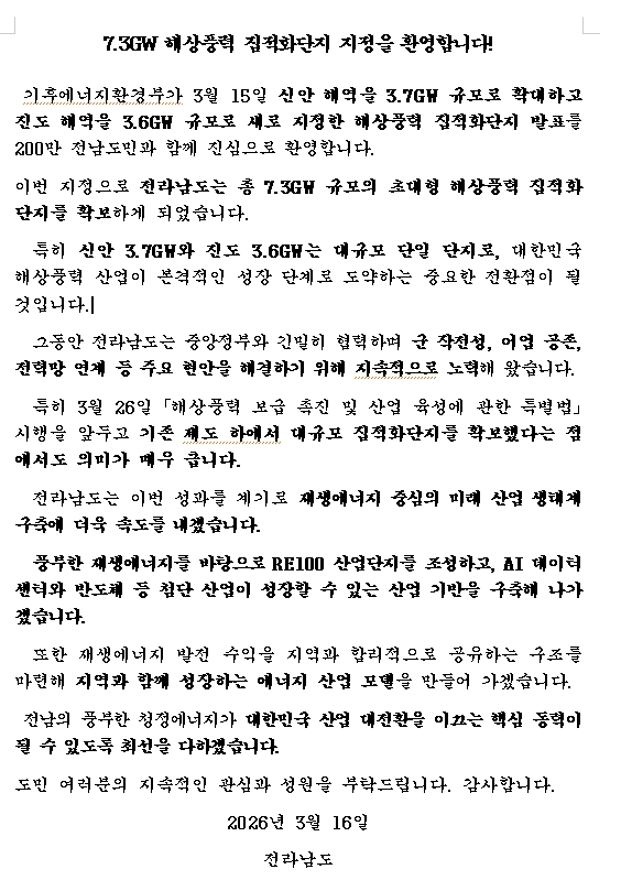 신안·진도 7.3GW 초대형 집적화단지 지정 환영문 발표