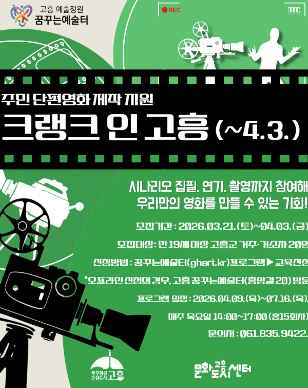 주민이 직접 만드는 단편영화 ‘크랭크 인 고흥’ 참여자 모집