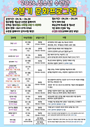 화순군청소년수련관, 2026년 2분기 문화 프로그램 운영