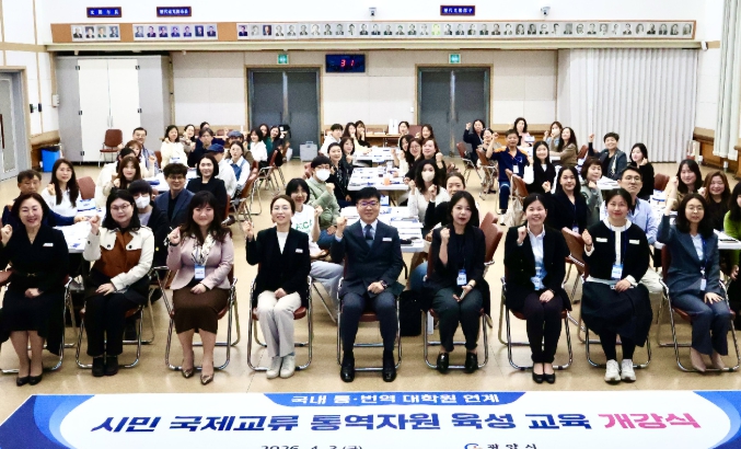 [더조은뉴스] 광양시는 4월 3일 시청 시민홀에서 '국내 통·번역 대학원 연계 시민 국제교류 통역자원 육성 교육' 개강식을 열고 시민 외국어 통역 인재 양성에 나섰다.