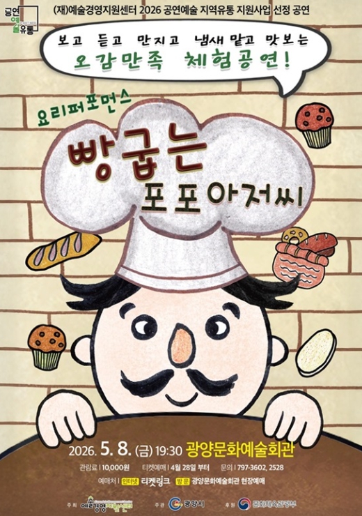 [더조은뉴스] 광양시는 5월 가정의 달을 맞아 오는 5월 8일 오후 7시 30분 광양문화예술회관 대공연장에서 극단선물의 어린이 참여형 뮤지컬 ‘빵굽는 포포아저씨’를 선보인다고 밝혔다.