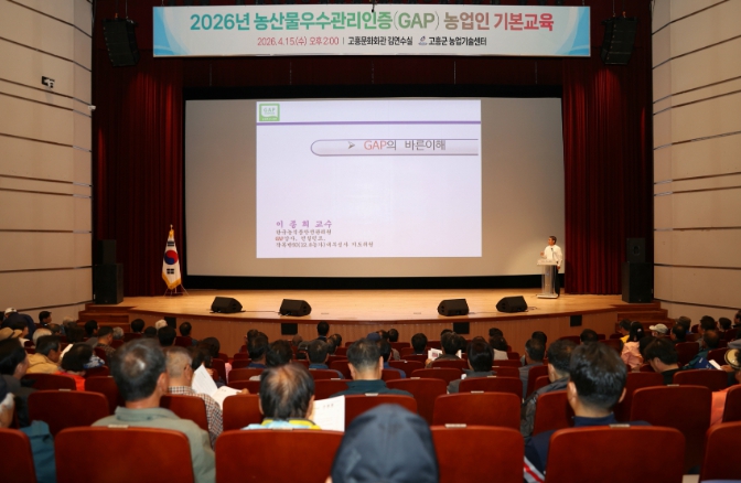 [더조은뉴스]고흥군은 지난 15일 고흥문화회관 김연수실에서 지역 농업인 344명이 참석한 가운데 2026년 농산물우수관리(GAP) 인증 농업인 기본교육을 실시했다고 밝혔다.