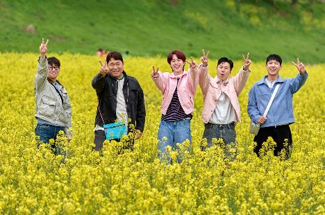 지난 4월 10일부터 이틀간 KBS 대표 예능 프로그램 ‘1박 2일’ 촬영이 진행됐다. 사진은 출연진들이 영산강 유채꽃밭에서 기념사진을 찍고 있는 모습.