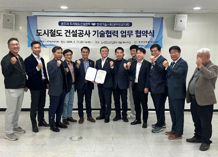 [더조은뉴스]광주광역시 도시철도건설본부는 21일 본부 8층 대회의실에서 한국기술사회 광주·전남지회와 ‘광주시 도시철도 2호선 건설공사 기술협력 업무협약’을 체결했다.