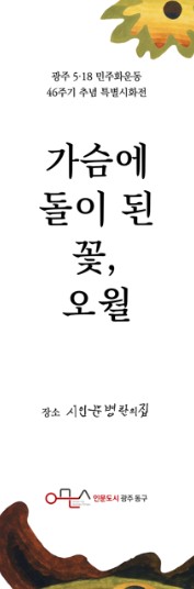 [더조은뉴스]광주 동구는 5·18민주화운동 46주년을 기념해 인문거점시설인 시인 문병란의 집에서 특별 시화전 ‘가슴에 돌이 된 꽃, 오월’을 오는 5월부터 8월까지 개최한다고 밝혔다.