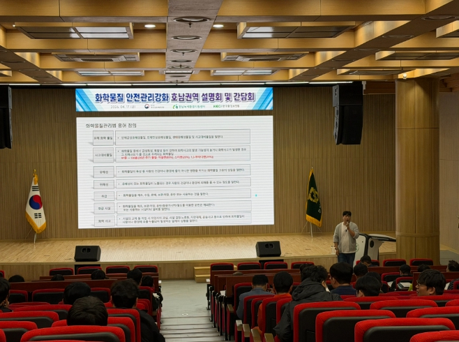 [더조은뉴스]전남녹색환경지원센터(센터장 김은식 전남대 교수)는 지난 4월 17일, 전남대학교(여수) 산학연구관 국제회의실에서 ‘화학물질 안전관리 강화 호남권역 설명회 및 간담회’를 개최했다.
