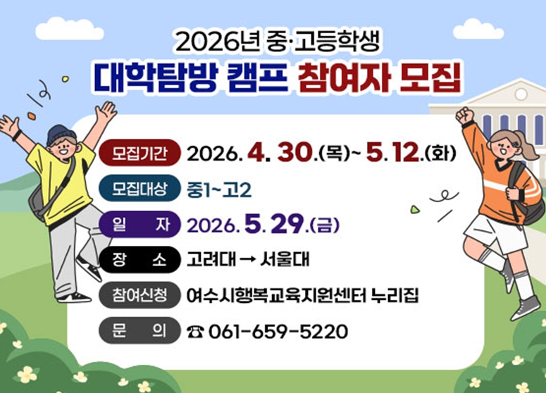여수시행복교육지원센터, ‘2026년 중·고등학생 대학 탐방 캠프’ 참여자 모집