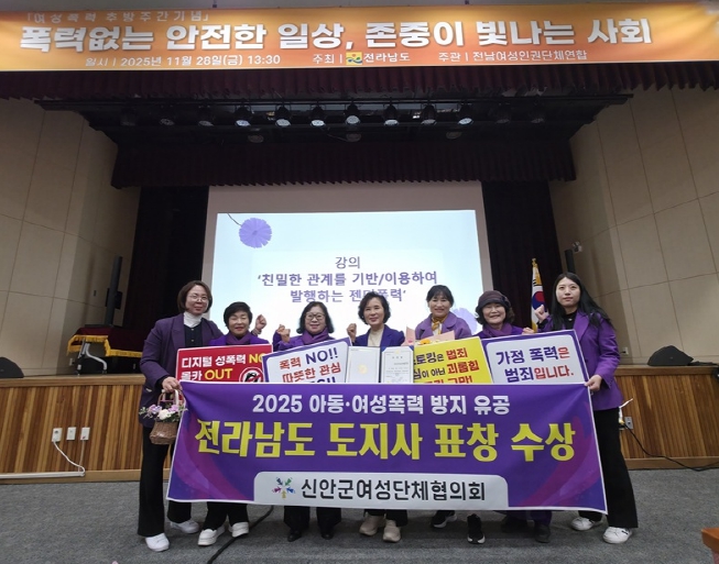1월 28일, 신안군여성단체협의가 2025 여성폭력추방주간 기념행사에서 ‘전남도지사 표창’을 수상했다.