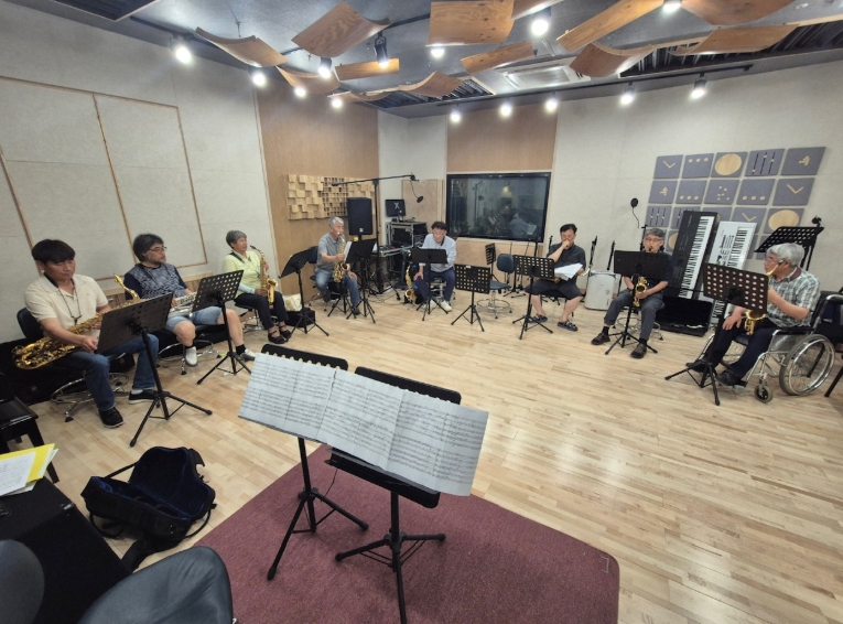 제10기 음악대학 수강생들이 색소폰 강의에 참여하고 있다.
