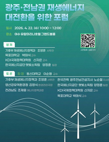행사에는 기후부를 비롯하여 광주광역시, 전라남도 등 지방정부, 에너지 유관기관, 학계 전문가 및 시민 등 다양한 이해관계자가 참여할 예정이다.